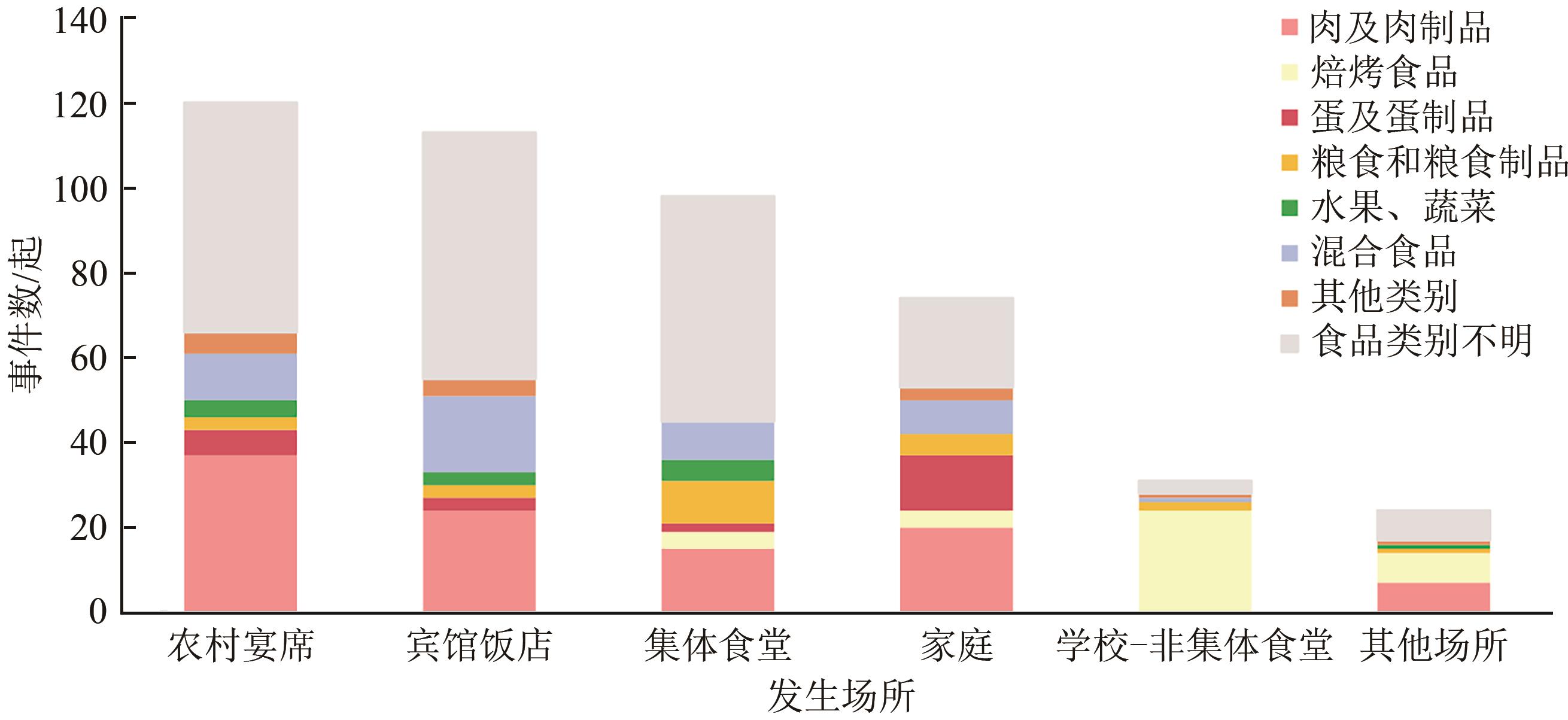 摘要:目的 分析我国沙门菌食物中毒事件发生的流行病学特征,为制定防控措施提供依据。方法 收集和整理中国疾病预防控制信息系统突发公共卫生事件报告管理系统中,判定为由沙门菌引起的食物中毒事件,采用描述性流行病学方法进行分析。结果 2004—2019年,共报告沙门菌食物中毒事件460起,发病26 732人,死亡16人,病死率为0.06%。5~9月份报告事件数较多,占总事件数的63.91%;完成样品溯源,明确污染食品的事件数占57.39%;沙门菌污染单一食品类型最多的是肉及肉制品,其次是焙烤食品和蛋及蛋制品,依次占事件总数的22.39%、8.48%和5.22%。上报沙门菌食物中毒事件数最多的省份依次是云南省、四川省和广东省,分别占事件总数的15.87%、11.09%和10.65%;事件发生的主要场所为餐饮服务单位、农村宴席和家庭,分别占事件总数的47.17%、26.09%、和16.09%。完成沙门菌属血清型分型检测的有182起,其中检出最多的依次为肠炎沙门菌(56.04%,102/182)、鼠伤寒沙门菌(14.29%,26/182)和都柏林沙门菌(5.49%,10/182)。结论 建议重点关注肉类、焙烤类、蛋类食品及其制品沙门菌污染风险,加强对农村宴席、宾馆饭店和集体食堂的食品安全监管,加强沙门菌食物中毒事件高发的夏秋时期安全宣传、监测预警、报告调查和溯源鉴定等工作。