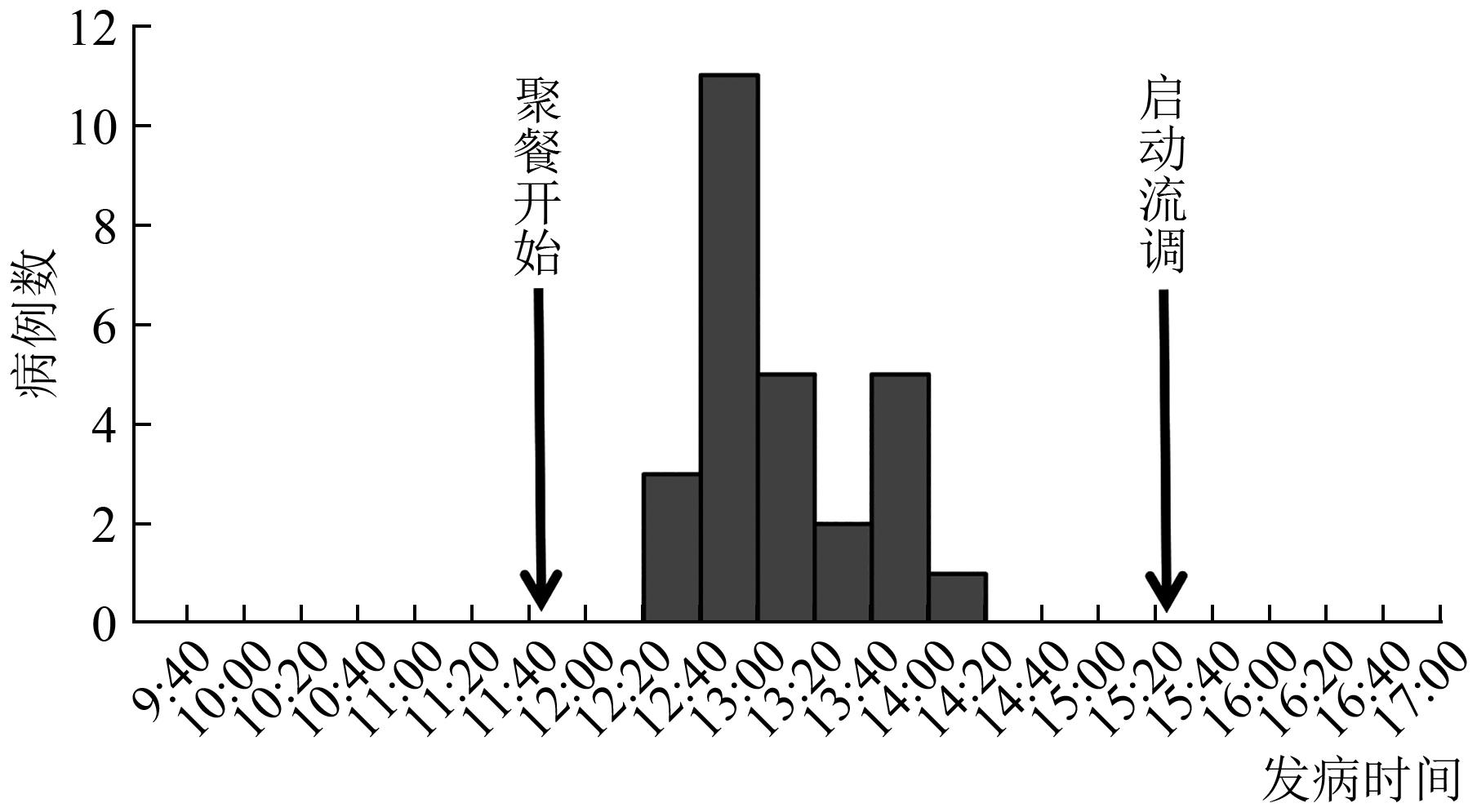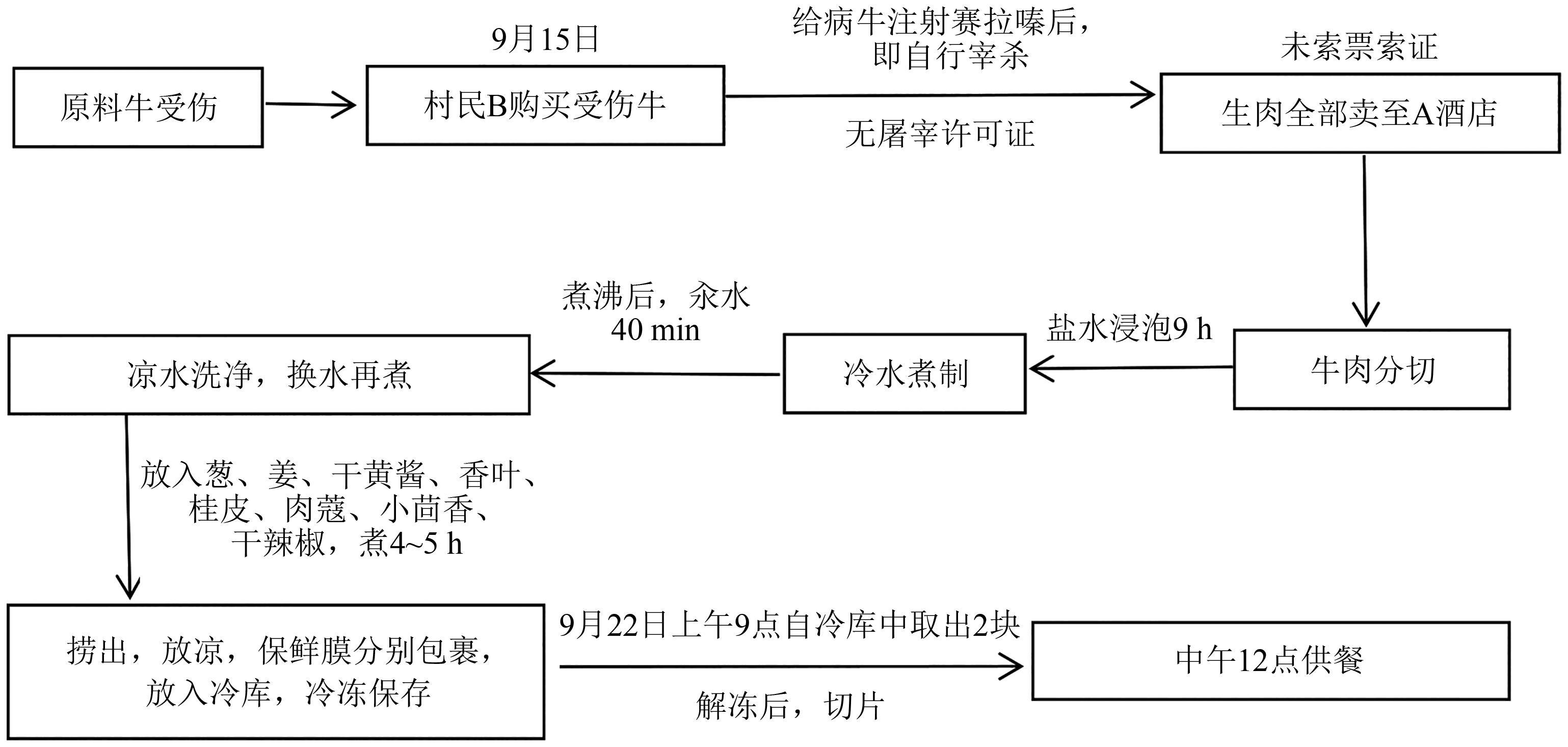 摘要:目的 对一起集体聚餐中,因进食被赛拉嗪污染的牛肉引起的食源性疾病暴发事件进行流行病学调查,分析其污染原因,为类似事件的防控提供参考依据。方法 按照《食品安全事故流行病学调查技术指南(2012版)》,对某地一起发生在餐饮服务单位的疑似食源性疾病暴发事件开展人群流行病学调查、食品卫生学调查和实验室检测,采用描述流行病学和分析流行病学方法,进行数据整理分析,使用EpiInfo 7.1软件,进行χ2检验和多因素Logistic回归分析,P<0.05为差异有统计学意义。结果 本起事件共有病例27例,患病率为47.37%(27/57)。主要临床表现为头晕(100.0%)、嗜睡(37.0%)、心动过缓(37.0%);流行曲线显示点源暴露,单因素(OR=29.71,95%CI:3.56~248.10)和多因素Logistic回归(OR=16.577,95%CI:1.307~210.055)研究结果显示,可疑食物为五香牛肉;食品卫生学调查结果显示,污染环节为未按照兽药休药期规定,私屠滥宰,导致原料污染;在病例生物性标本、食品半成品、留样食品和加工制作环境样本中,均检出赛拉嗪。结论 本起事件是一起因进食被盐酸赛拉嗪污染五香牛肉导致的食源性疾病暴发事件。建议进一步加大《中华人民共和国兽药典》的培训力度,增强培训效果;强化兽药使用监管、打击私屠滥宰,并落实好原料索票索证制度。